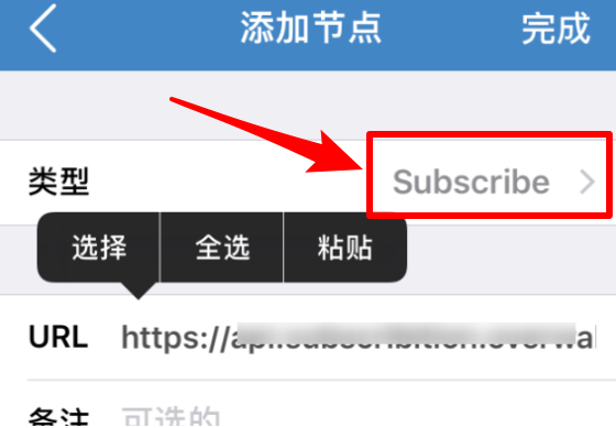 选择Subscribe URL里粘贴订单卡密